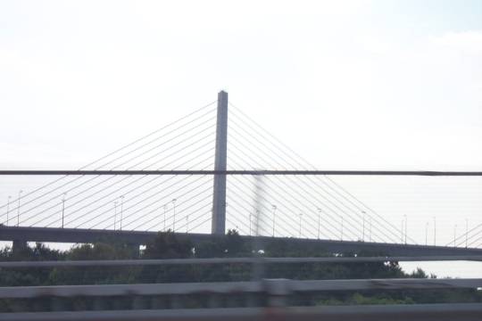 An interesting suspension bridge concept, no? one tower, one set of cables