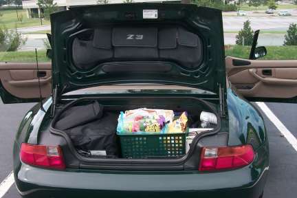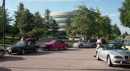Later that evening, we had a cookout at the factory cafeteria. Unfortunately, they don't allow cameras inside, so I couldn't get any pix of the night's events, which included a talk by Burkhard Goeschel, the father of the Z3. He was funny! For a German engineer, he was exceptionally funny to listen to. Oh well, once the night was done, we all went home, but I didn't, not before taking this late-nite photo outside the Zentrum. At dinner, I managed to get a warning triangle that BMW sells in Europe for our cars, but somehow they don't offer it here in the US. Strange, considering that the trunk has a special slot and tie-down straps for it. The warning triangle was thanks to Tim Cullis, known on the message board as Tim UK, and Rachel Corey, who pointed Tim in my direction. Check out his incredibly detailed Web Site that lists all the color options that there ever were for the Z3.