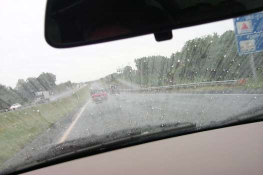 Just before departure, Dave Pavik offered some Rain-X to Rachel and me. It was incredible! The water just rolled right up the windshield. I only needed the intermittent setting for most of the time it rained.