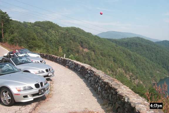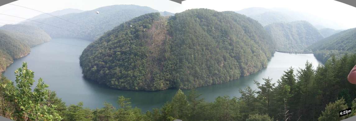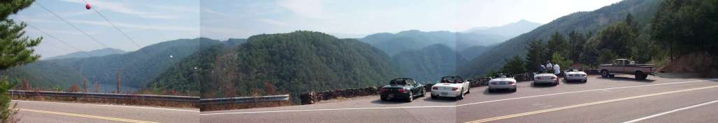 So, at the top of the Dragon, there's a scenic vista that's just big enough for a handful of cars. Here's a panoramic view (PhotoVista couldn't handle this, so pardon the overlapping areas / obvious borders of the result)