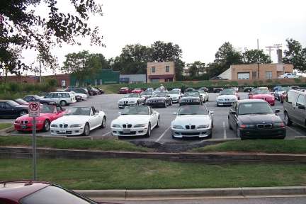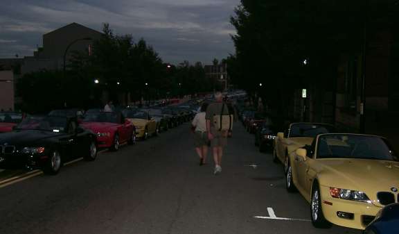 Later that evening, BMW arranged to cordon off a street in Greenville, SC, to line up the Z3s and pack 'em in, and there was a free concert for us as well. Those of us who showed up later got relegated to a parking lot.
