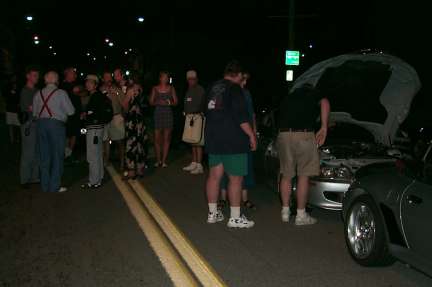 After the concert, people mulled about, admiring each other's cars.