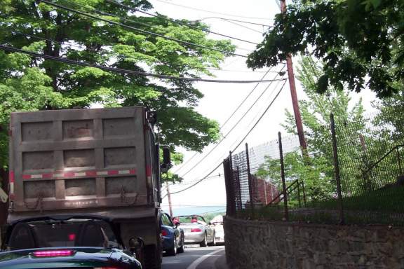 Closer now. At one point, Rachel asked what the Delaware Water Gap actually was (a break in the mountains to allow the Delaware River to pass through). Her response? "Oh, you mean Mountain Cleavage!"