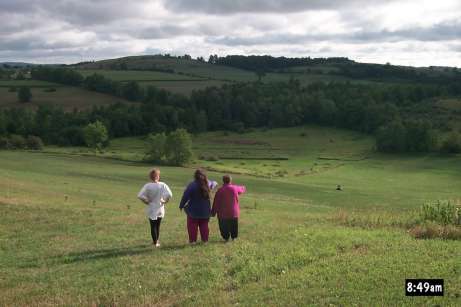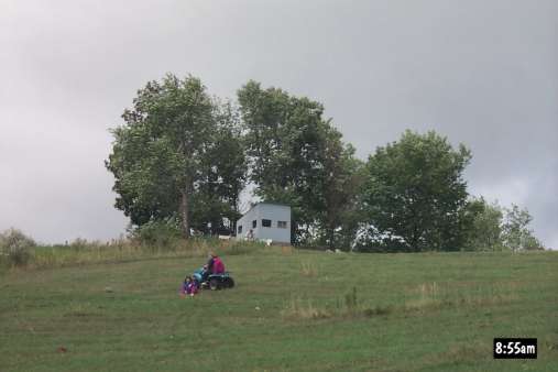 In the morning, Pam, Maria, and Carla play Spot the four-wheeeler