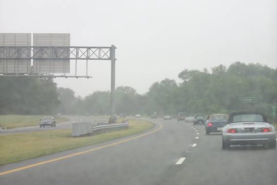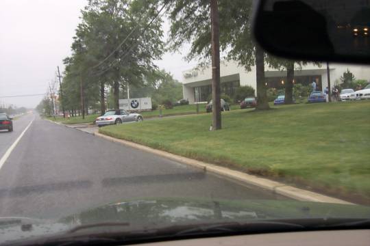 It started out as a soggy day. I was supposed to link up with Rachel while driving on the NJ Turnpike. Unfortunately, I was detained, and ended up several miles behind her on the road, outside of TalkAbout range. Fortunately, both our Cellphones cooperated, and we chatted a couple of times as we went. Eventually, I got to Exit 4 on the NJTP, and I realized I'd forgotten all my directions and contact info. So, from what I remembered of the map to DeSimone BMW I travelled North from the exit. However, DeSimone is to the South! I thought I was going in the right direction - I heard a couple of people, including Craig Cannon, talking away about who was and who wasn't coming. Silly me. I gave up in frustration, turned around, and then got a phone call from Rachel, who was wondering where I'd gone to. She put me on with someone from the dealership, who guided me the rest of the way in.
