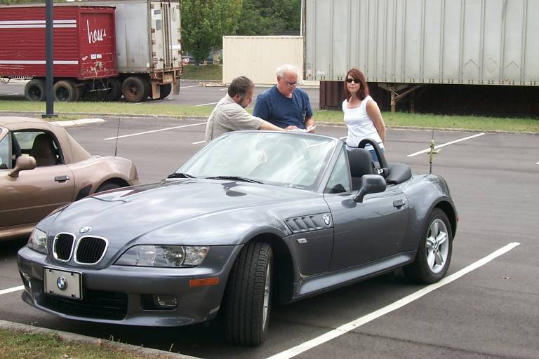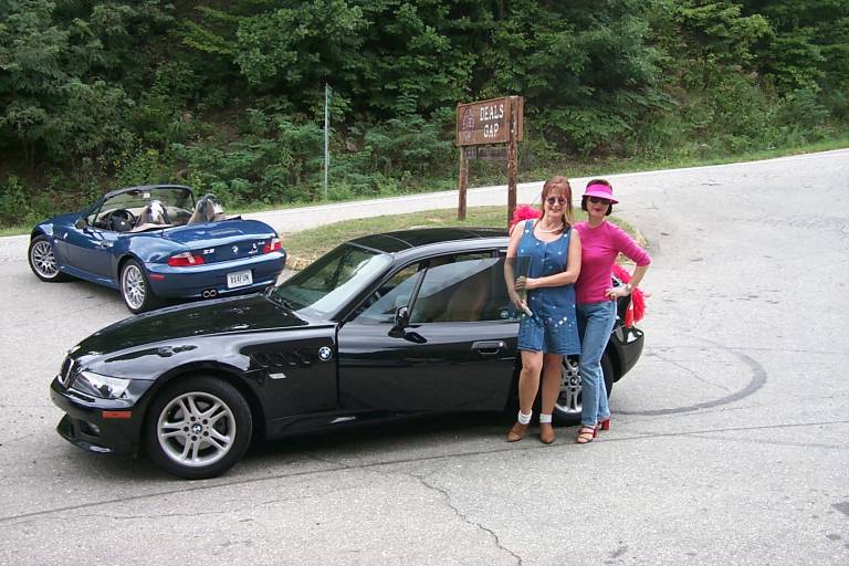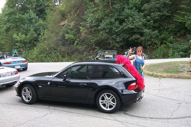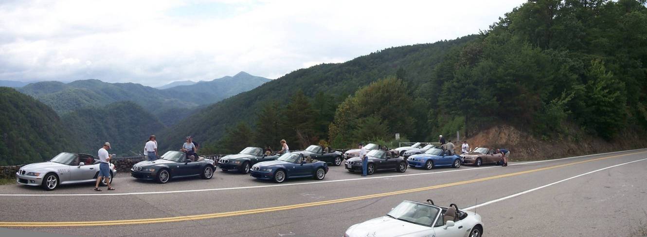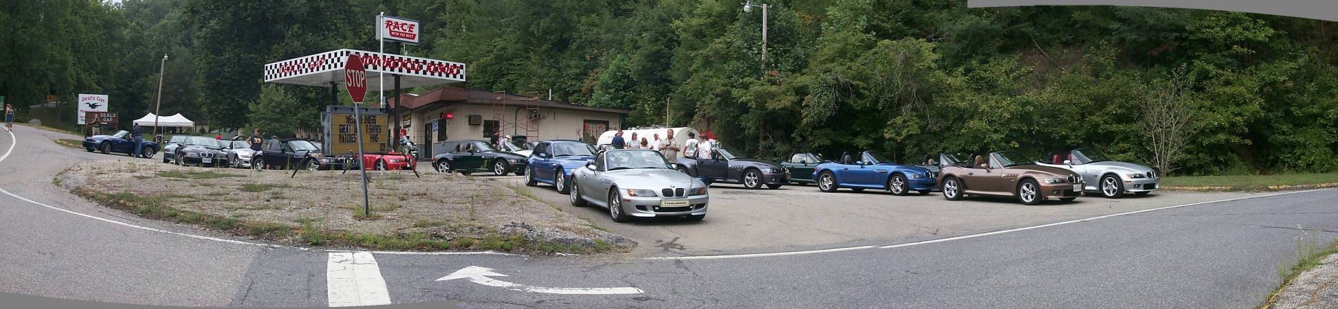 Eventually, we ended up at the endpoint, and did the souvenir thing (Jon's Note: the program I use to make panoramic pictures had a little problem with this set of pictures. Note the Z3 with the shortened wheelbase in the middle, which just so happens to be mine). While talking about the experience, another group of Z3ers showed up after a Dragon Run, and we spent a little bit more time swapping stories. I got to meet Jeannine (Southern Cinderella on the Message Board). She drives a black Z3 Coupe, and hangs a feather boa off of the antenna whenever she parks it.