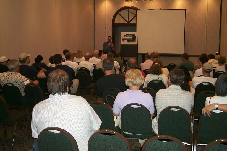 After dinner, we were going to have fun hanging out at the pool with everyone, but the weather had other plans. The rains came, but only after many of us returned to the hotel. I ended up chatting with some of the Texans. Mary Battaglia recounted the story of how a road gator flew up and smacked into her windshield and shattered it while she was on the way to Homecoming. OUCH! She had to drive from Little Rock to Memphis with a shattered windshield because the Little Rock dealer didn't have one, but someone was having one delivered up in Memphis, and if she got there before the person, the windshield was hers. Fortunately, she did get there in time.