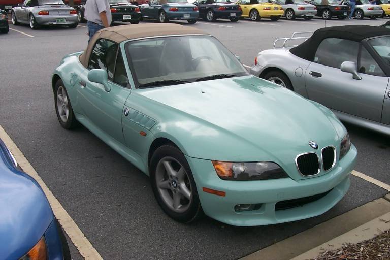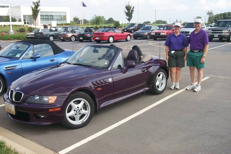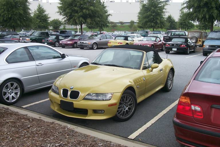 I attended the two morning seminars by Michelin and Dinan, and learned a lot about tire technology that I quickly forgot, for the most part. A bit later, Rachel, Dave, and I drove over to the Factory. Rachel recalled Tim UK's comments last year about trolling the factory parking lot. Many of the people who work at the factory have Z3s, and often, BMW tries out different colors of paint, and the workers apparently get first dibs on the colors. So, I looked, but only found one in Phoenix Yellow or another that's Turquoise Green (Thanks Tim!) which did make it into production one year. We wandered around the Zentrum Museum, where we saw some old favorites, and some others (see the full page of Zentrum photos here). Aside from that, they also had a Z8 there, and there was another one over at the Performance Center. I made a page for just these two. Very Nice Car!!!