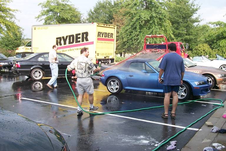 A bit later, we went back to the hotel, where it was time to get ready for the evening at the Peace Center, where we would get our Homecoming swag. The hotel had set up a car wash area, and many of us were out there, cleaning up our cars before the Panoramic picture, but also so we could get our cars clean for the cars lining up Main Street in Greenville. I got a chance to see what JonM from LeatherZ and his cohorts sprucing up Z3Solution Keith's car for the vending area on Saturday.