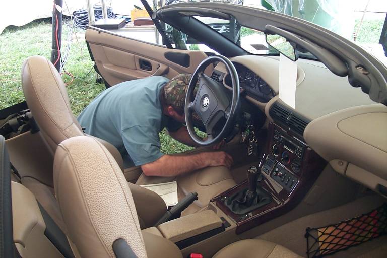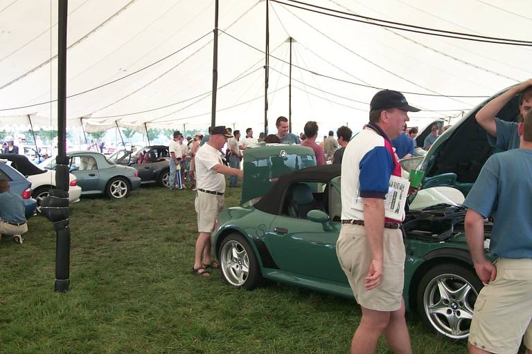 After the Driving School, I headed back to the Tech Tent to see if I could get some things taken care of. Part of the attraction of the Homecoming events is the Tech Tent, where workers from the factory volunteer their time to fix some of the things that have gone wrong with people's cars, gratis. We heard that they had to turn away some of the factory people because they didn't have enough space to accommodate them all! Thanks guys!