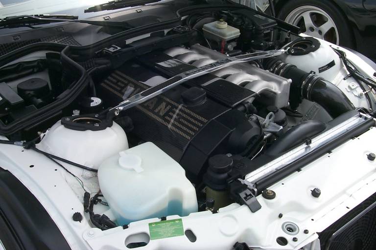 I eventually walked over to the vendor area, and picked up a bunch of goodies, including some of the new Z3 LeatherZ armrests, new style Z3 Solution door guards, and also I got a Z3 Zymol wash kit. Also, I stopped by the Dinan tent. Here you see a pic of their Carbon Fiber valve covers. Well, they're just covers, and overlay the existing valve covers. They're not for me, but maybe they are for you? To each, his own, I guess. I also got a chance to hear the Dinan Exhaust system, and it didn't impress me as much as the Supersprint exhaust I heard on John B's car.