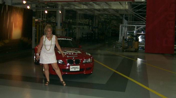 Also, when we were out and about, the factory people were attending, videotaping us. Apparently, they shoot videos at the Homecoming events, and show the final results to the factory workers. They had shots from that day, and were showing them to us before the talks. One of them was of Ken, who I rode with to shoot some footage on the skidpad part of the Driving School. After we sat down, Ken Sparks from BMW he introduced some video clips of the previous Homecomings. So, there was a juggler/fire eater/unicycle rider that kept us entertained while we ate, or was that a bunch of different people?. Rachel called all the Z3 Girls together for a pic at Homecoming. So, we heard a talk about manufacturing, and we shared stories about our trips (complete with prizes). After it was all said and done, we had a little surprise. Bryan proposed to his girlfriend Jean, and she accepted! There's a Homecoming first! Here's the happy couple, after they took a breath :-)