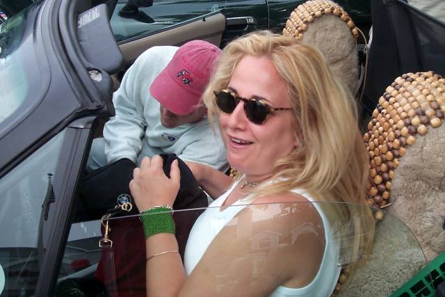People start assembling, and there's the usual round of "Ooo, what's that?" and people start showing off their babies. Rachel recently got a new loaner head unit, amp, and front speakers, and confesses that she finally gets what all the fuss is about. Here, DC twiddles her tweeters....er, um, adjusts her stereo's sound.