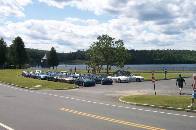 Yet another regrouping after a quick right-left set of turns. At times, the Connecticutters (Nutmeggers, as they prefer) that we drove past would occasionally let the whole convoy through at the 4-ways stops. I guess they aren't related to the drivers I encountered on I-95!