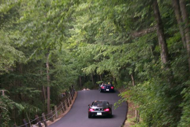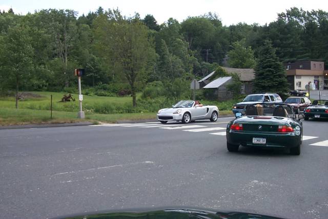 Dan then led us past a snooty 'private' lake that was 'by permit only'. All of us drove past, slowly, in a show of "the best revenge is living well" sort of style. At one point, we passed one of the new Toyota MR2s going the other way. After about the 9th or 10th Z3 passed him, I'm guessing (hoping?) that he was wondering if he'd made the right choice. I do like the way they're designed, but unfortunately, they only have a miniscule amount of storage space.