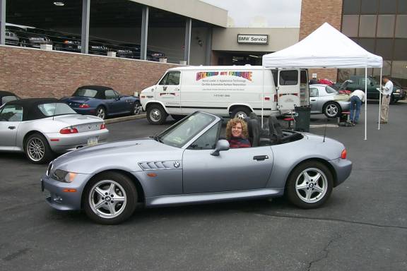 Here's Kathy in her Ice Blue Z3, one of the rare BMW test colors. Very Nice!