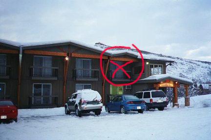 Having a wonderful time, Wish you were here. I stayed at the SnowShoe Inn, pictured here. My room Marked with an X. |