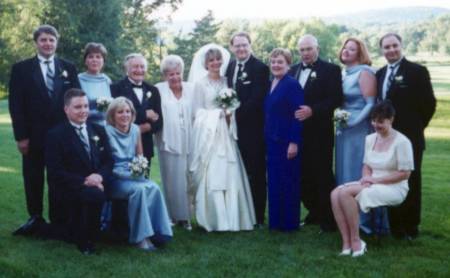 Once we were a little more settled, the official wedding photos began. Here is the the happy couple, both sets of parents, and Kathy and Doug's sisters and brothers: