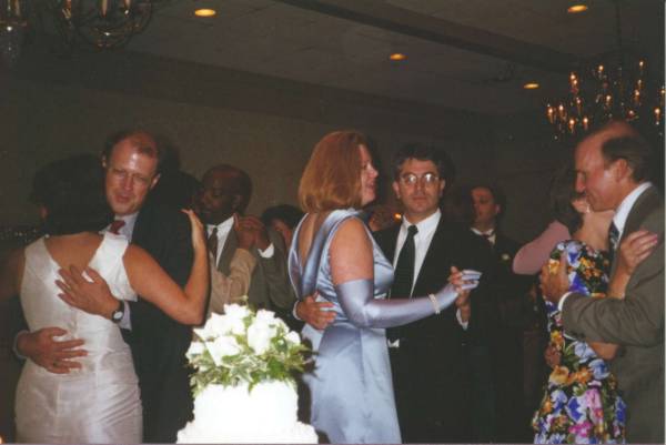 Once we got inside, the dancing began. Here is Doug's sister Beth with her husband Steve, flanked by several other couples.