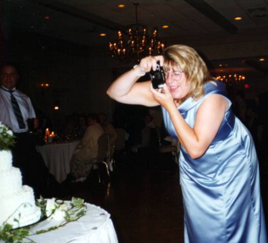 Here, Joan gets a photo of the delicious wedding cake, which I forgot to do...